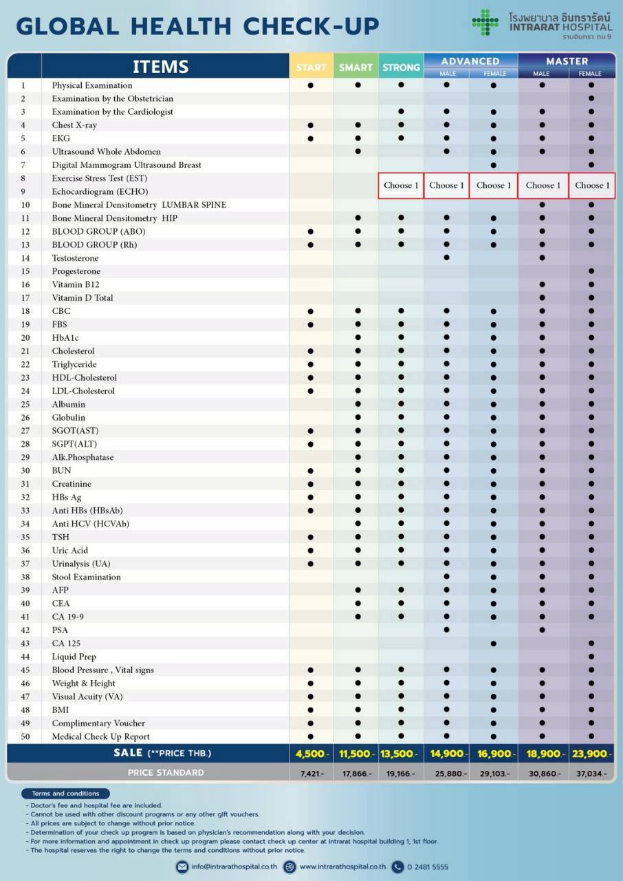 ဘန်ကောက်မြို့တွင်းမှာတည်ရှိတဲ့ ကျွန်မတို့ရဲ့ Intrarat International Hospital - အင်ထရာရတ်ဆေးရုံကြီးမှာ နှစ်စဉ် ကျန်းမာရေး စစ်ဆေးခြင်း အစီအစဉ် (Health Check-up Package) ကို အဆင်ပြေ သက်သာတဲ့ ဈေးနှုန်း၊ ရွေးချယ်စရာ check-up package အမျိုးအစားအစုံ၊ စိတ်ကျေနပ်မှု အပြည့်အဝ ရရှိနိုင်မယ့် အရည်အသွေးပြည့်မီသော ဝန်ဆောင်မှုတို့နဲ့အတူ လာရောက် စစ်ဆေးနိုင်ဖို့ ဖိတ်ခေါ်လိုက်ပါရစေရှင်။
