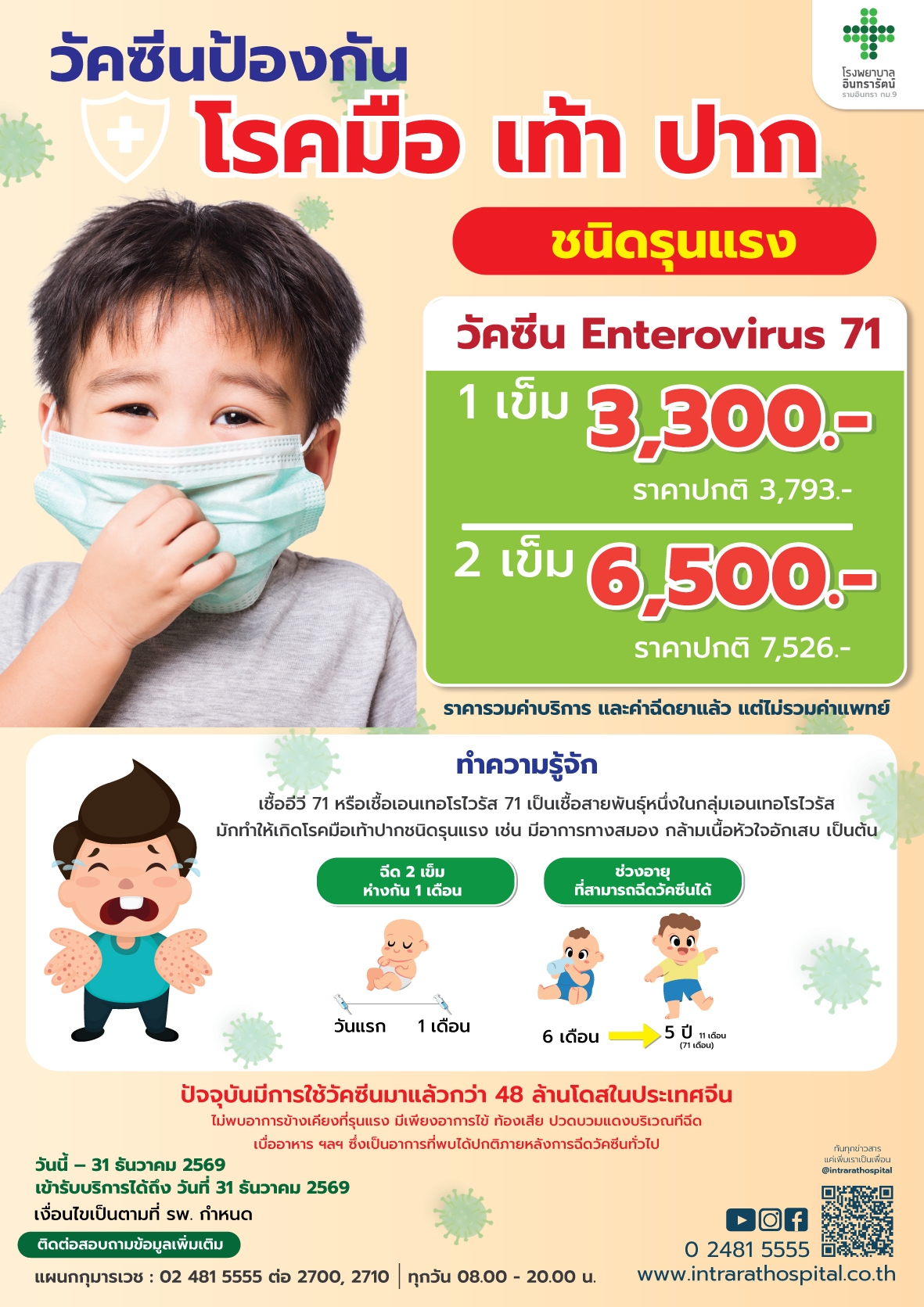 ฉีดวัคซีนป้องกันโรคมือเท้าปากชนิดรุนแรงที่เกิดจากเชื้อ Enterovirus 71