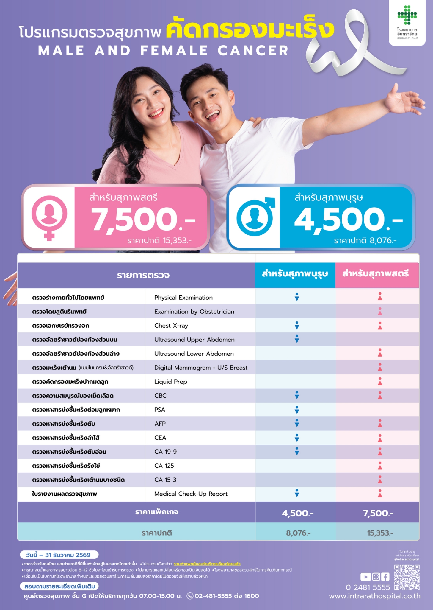 โปรแกรมตรวจสุขภาพ ติดต่อสอบถามข้อมูลเพิ่มเติมได้ที่