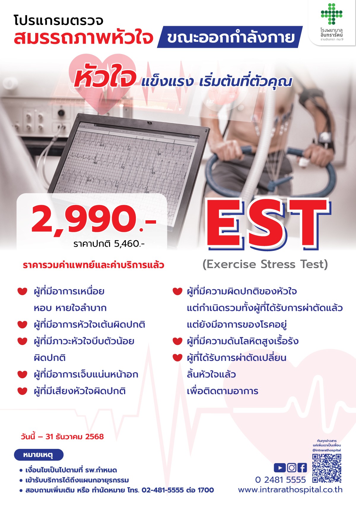 EST (Exercise Stress Test) หรือที่เรียกกันว่า การทดสอบสมรรถภาพหัวใจด้วยการออกกำลังกายบนสายพานวิ่ง