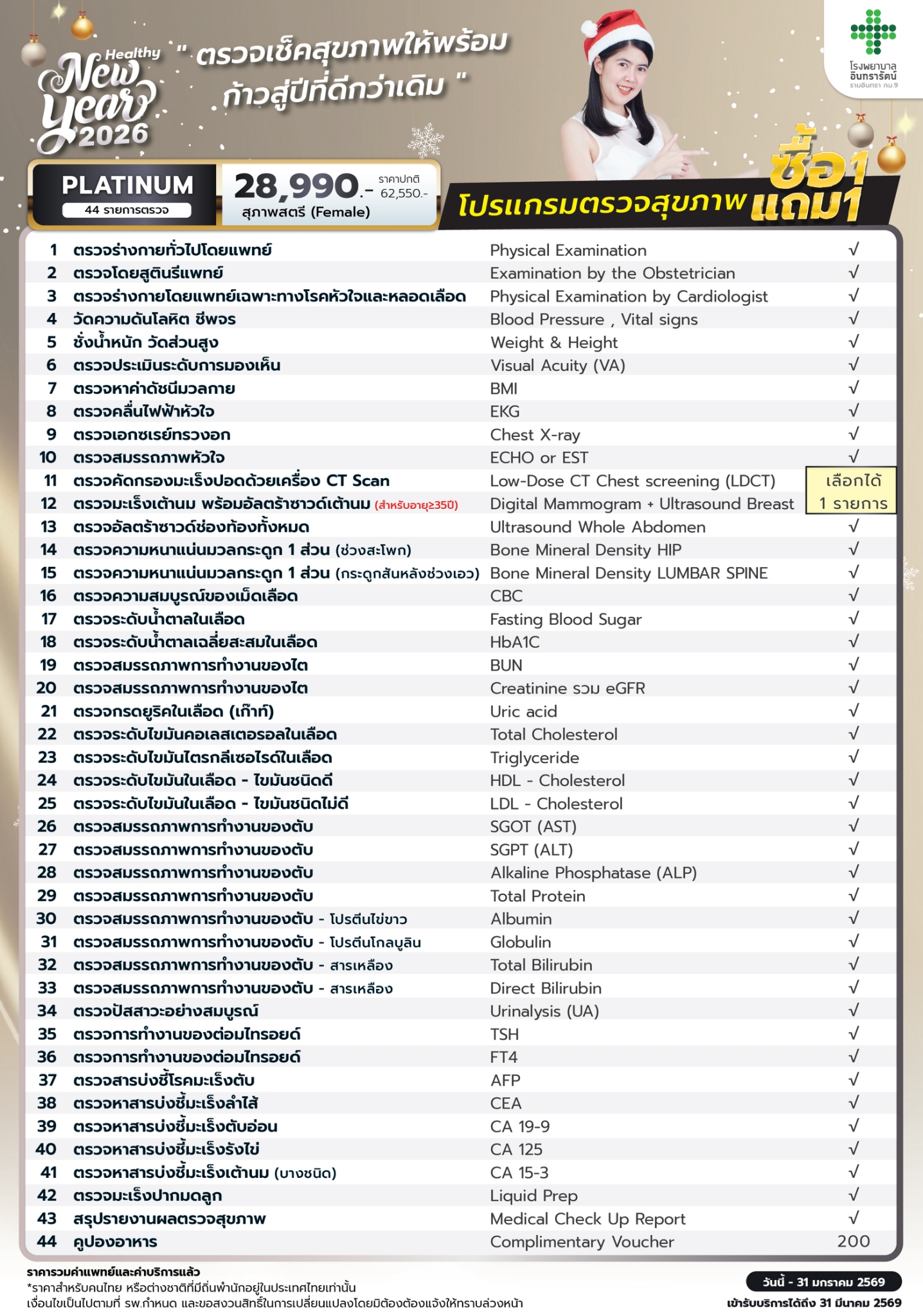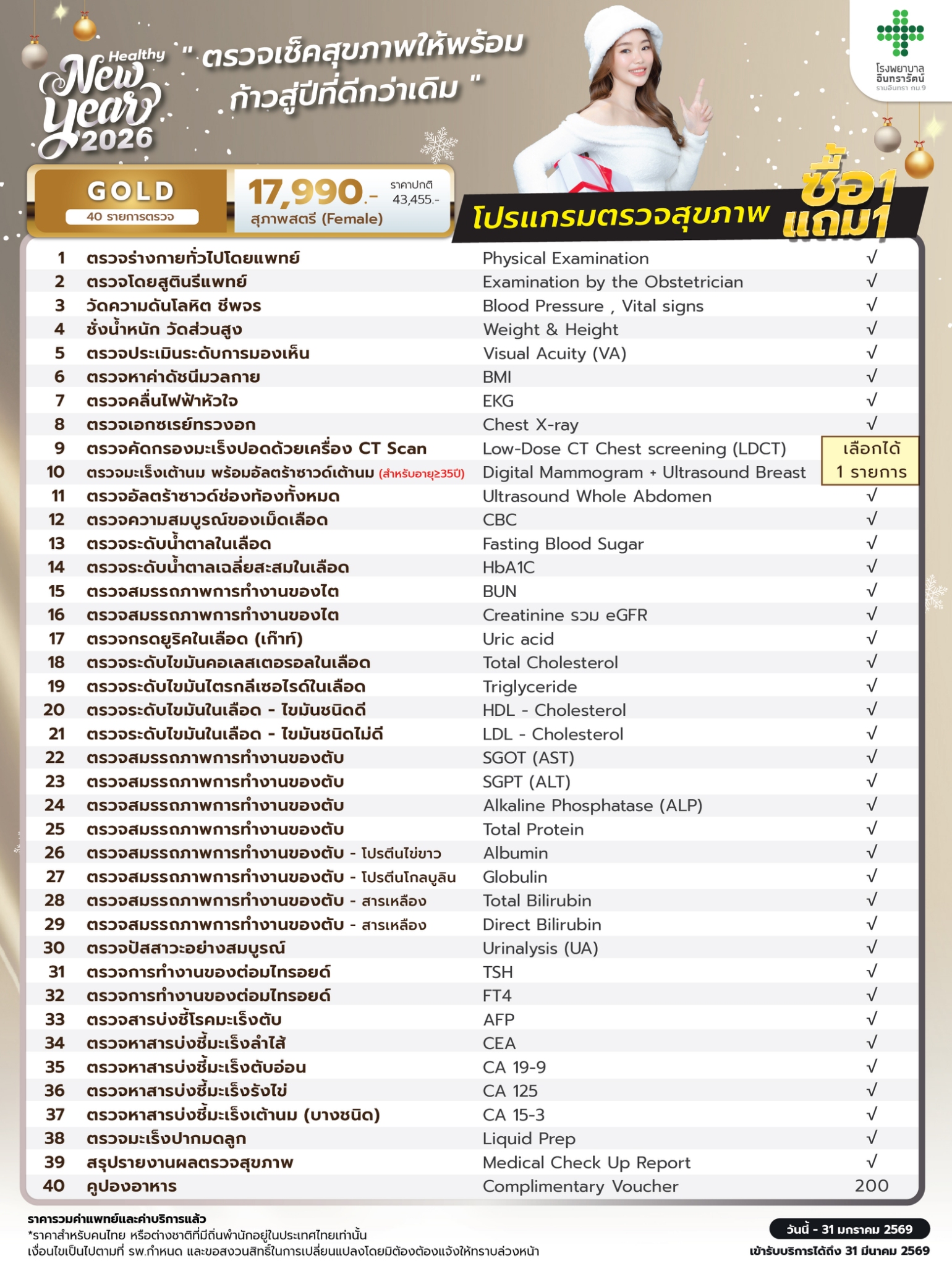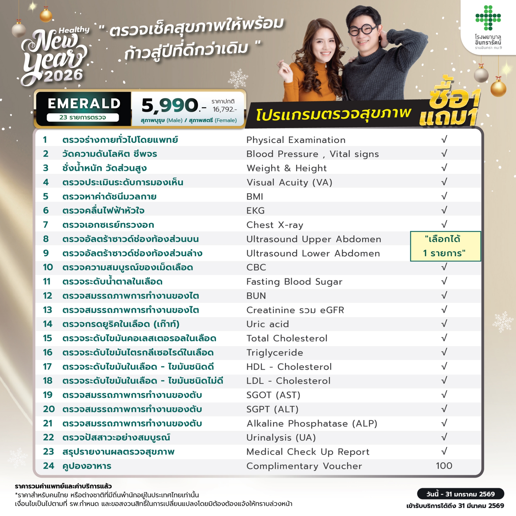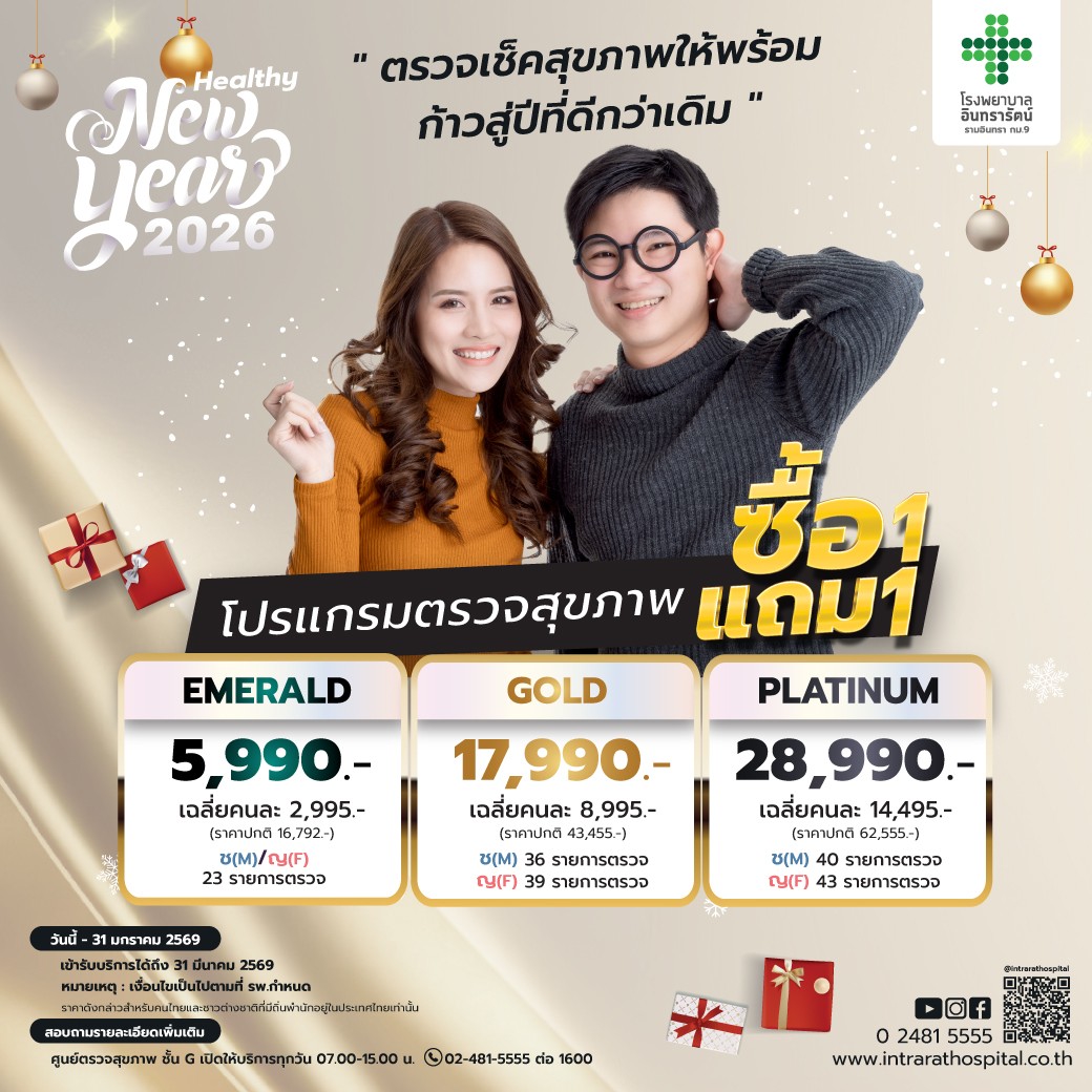 โรงพยาบาลอินทรารัตน์ ชวนคุณดูแลสุขภาพรับปีใหม่ กับโปรโมชั่นสุดคุ้ม “ซื้อ 1 แถม 1” โปรแกรมตรวจสุขภาพประจำปี