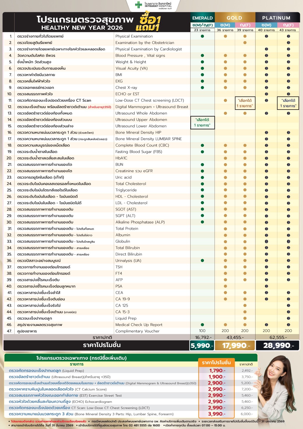 แพ็กเกจตรวจสุขภาพประจำปี ตั้งแต่ Emerald / Gold / Platinum