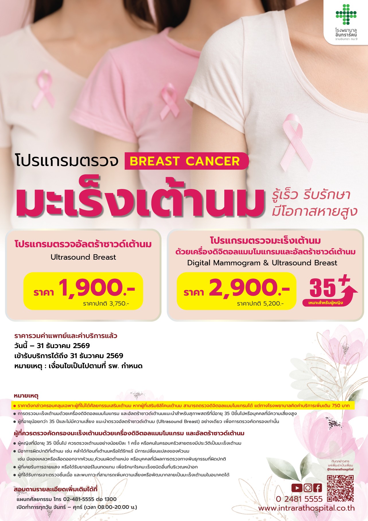 2. โปรแกรมตรวจมะเร็งเต้านมด้วยเครื่องดิจิตอลแมมโมแกรม และอัลตราซาวด์เต้านม