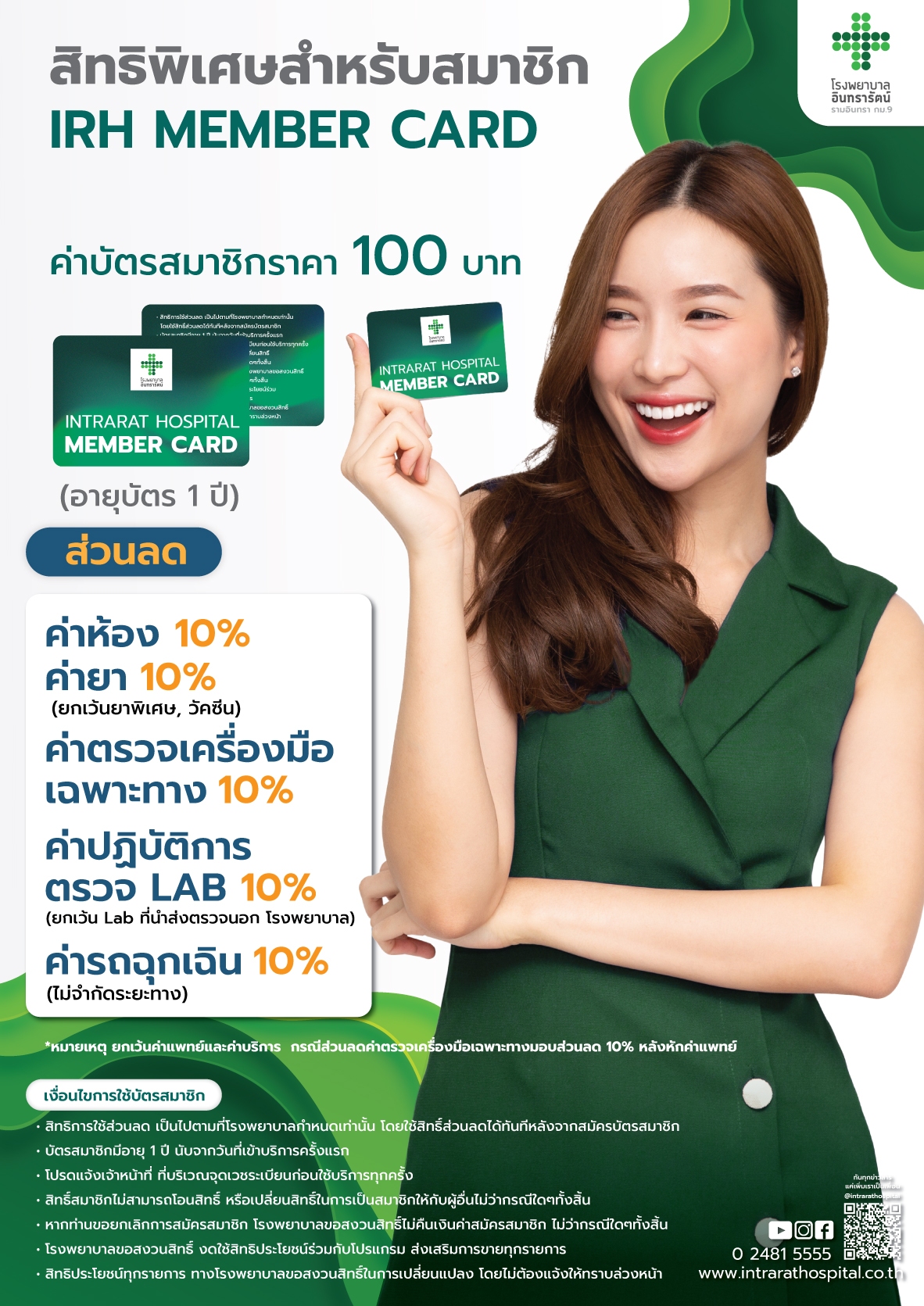 • สิทธิการใช้ส่วนลด เป็นไปตามที่โรงพยาบาลกำหนดเท่านั้น โดยใช้สิทธิ์ส่วนลดได้ทันทีหลังจากสมัครบัตรสมาชิก
