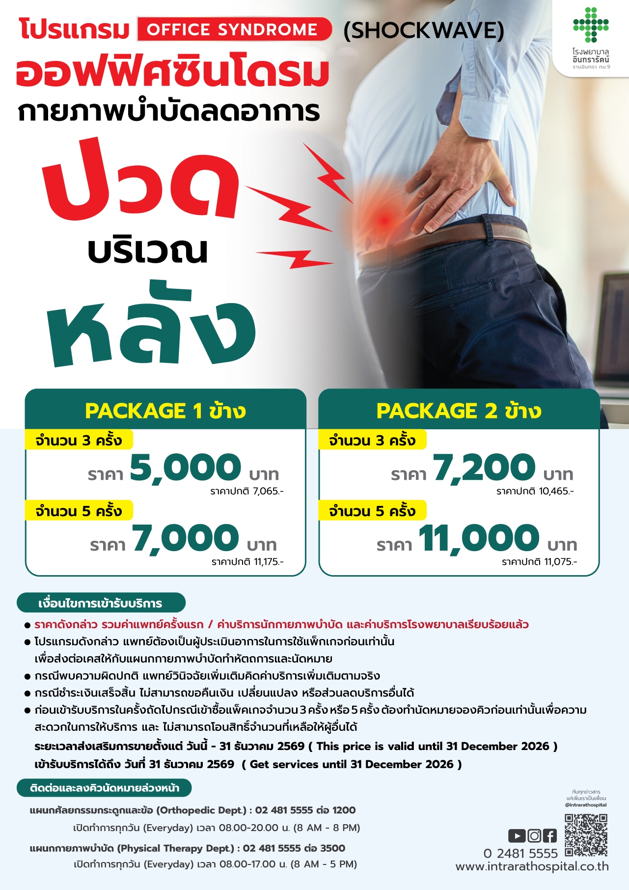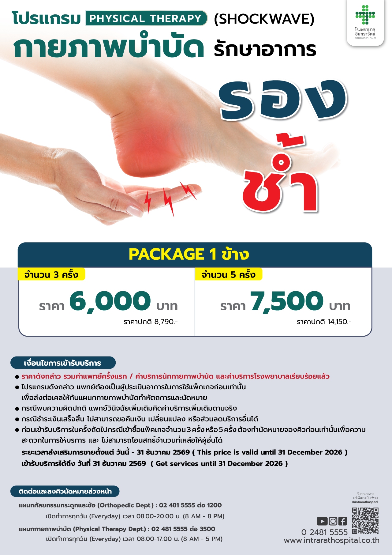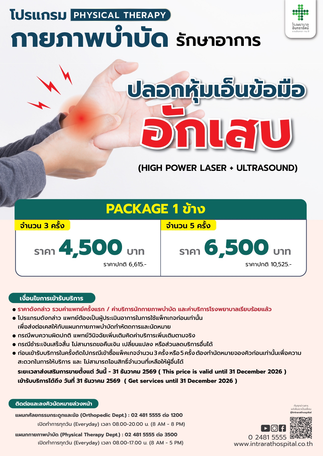 แผนกกายภาพบำบัด : 02 481 5555 ต่อ 3500