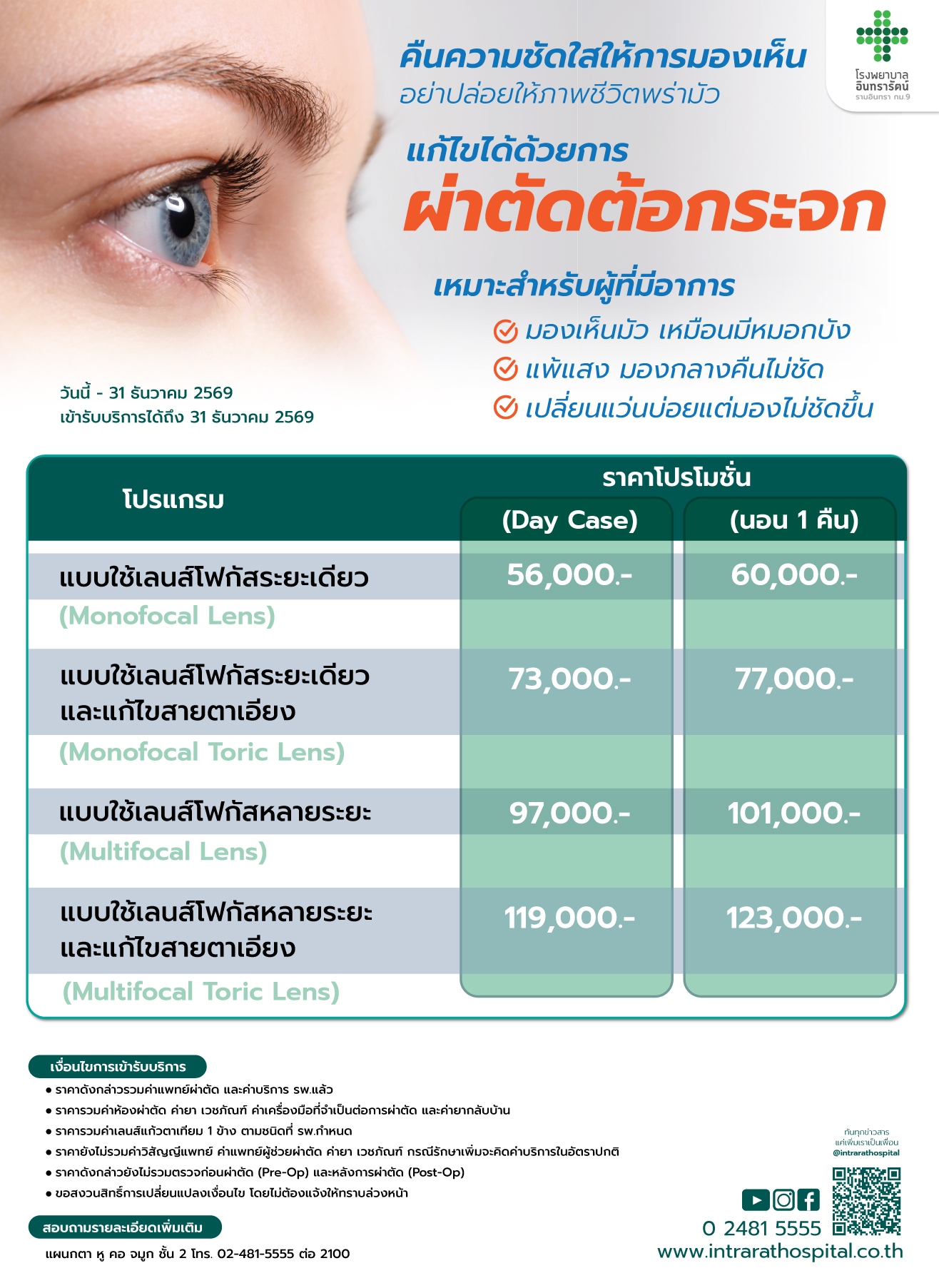2. การสลายต้อกระจกด้วยคลื่นเสียงความถี่สูง (Phacoemulsification)เป็นวิธีการผ่าตัดต้อกระจกด้วยการใช้ความถี่เสียง หรืออัลตราซาวด์ที่มีความถี่สูง เพื่อเข้าไปทำการสลายและดูดเอาเลนส์ที่เป็นต้อกระจกออกมา แล้วจึงนำเลนส์ตาเทียมใส่เข้าไปแทนที่ ซึ่งวิธีการผ่าตัดนี้แม้จะมีแผลผ่าตัดขนาดเล็กและมีโอกาสทำให้เกิดค่าสายตาเอียงน้อยกว่าวิธีอื่น ใช้เวลาพักฟื้นน้อย ผลการรักษาดี สามารถเลือกชนิดของแก้วตาเทียมได้หลากหลายตามความต้องการของผู้ป่วยและตอบโจทย์ในการแก้ไขค่าสายตาได้ดีกว่าวิธีอื่นๆ