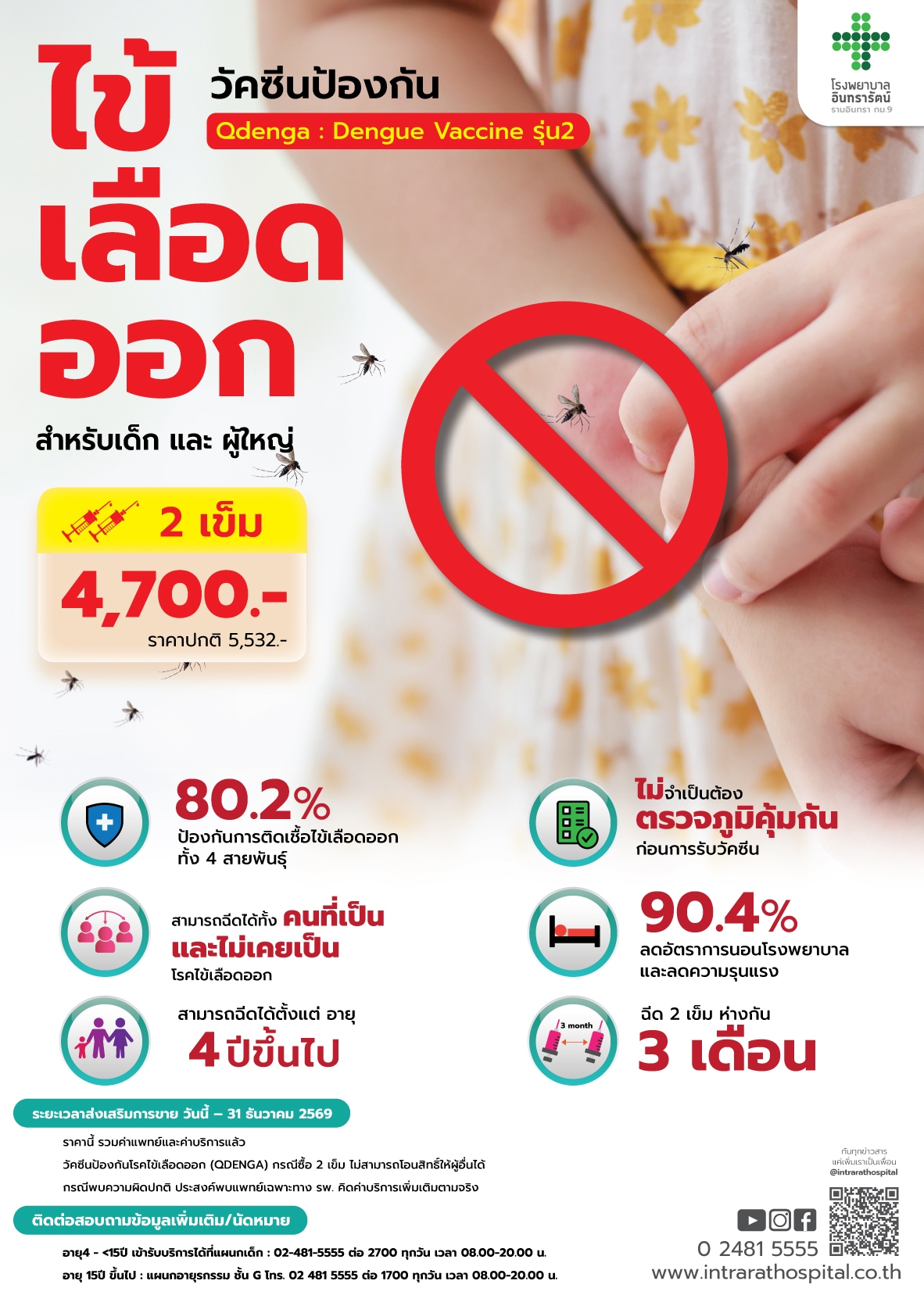 แพ็คเก็จวัคซีนป้องกันโรคไข้เลือดออก รุ่นที่ 2 (QDENGA VACCINE) จำนวน 2 เข็ม ราคา = 4,700 บาท