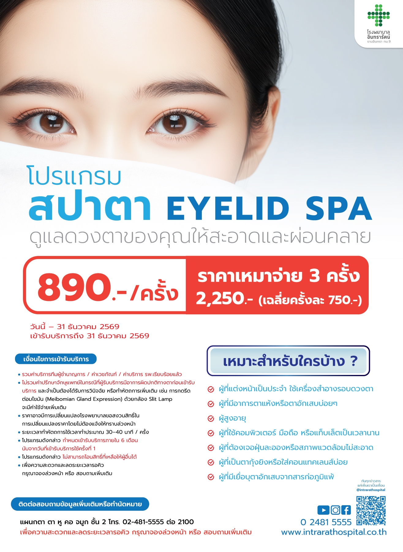 1. โปรแกรมสปาตา Eyelid Spa จำนวน 1 ครั้ง