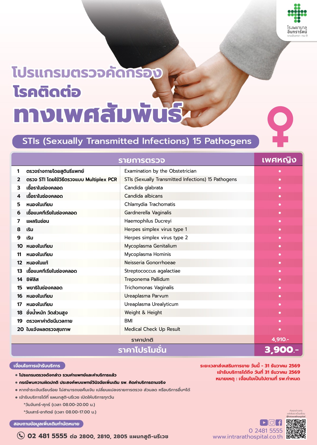 1. โปรแกรมตรวจโรคติดต่อทางเพศสัมพันธ์ (เพศหญิง)